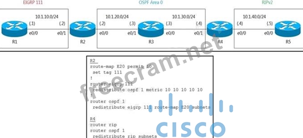 Question 58: Refer to the exhibit. (Exhibit) R6 should reach R1 via R5&gt...
