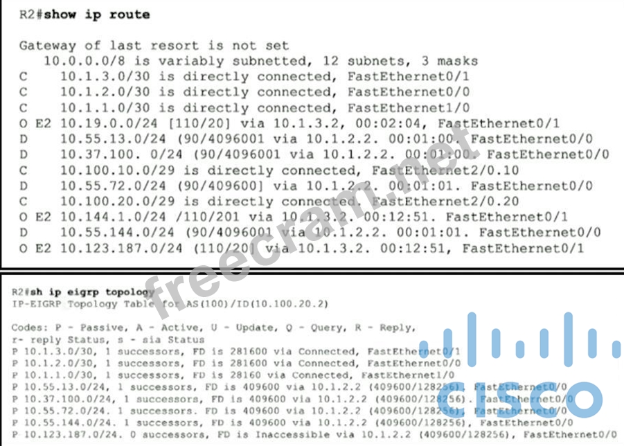 Question 193: Refer to the exhibit. (Exhibit) The R2 loopback interface is...