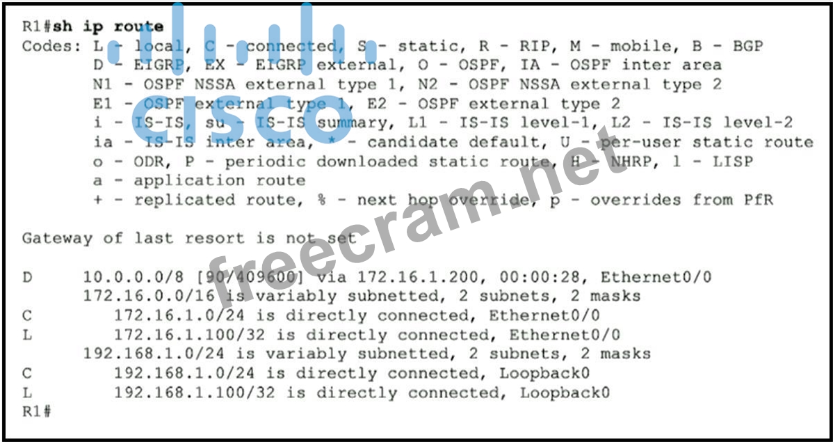 Question 193: Refer to the exhibit. (Exhibit) The R2 loopback interface is...