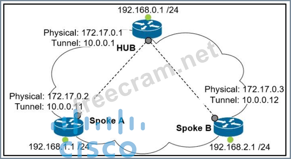 Question 201: (Exhibit) Refer to me exhibit. The hub and spoke are connect...