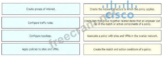 Drag and drop the vManage policy configuration procedures from the left onto the correct definitions on the right.