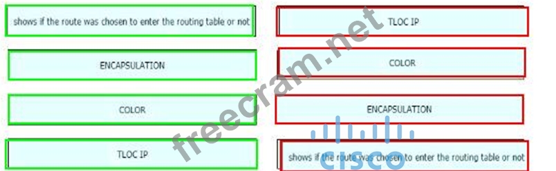 Drag and drop the route verification output from show omp tlocs from the left onto the correct explanations on the right.