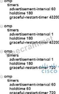 A network administrator is tasked to make sure that an OMP peer session is closed after missing three consecutive keepalive messages in 3 minutes. Additionally, route updates must be sent every minute. If a WAN Edge router becomes unavailable, the peer must use last known information to forward packets for 12 hours. Which set of configuration commands accomplishes this task?