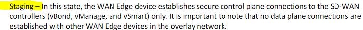 Question 43: In which device state does the WAN edge router create contro...