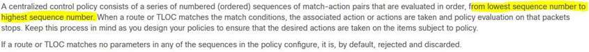 A network administrator is configuring a centralized control policy based on match action pairs for multiple conditions, Which order must be configured to prefer Prefix List over TLOC and TLOC over Origin?