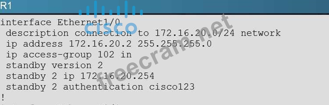 'Mar 26 11:17:47.439: HSRP: Et1/0 Grp 2 Hello out 172.16.20.2 Active pri 100 vIP