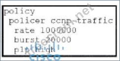 Question 93: An engineer configures policing with a rate of 125 Bps and a...