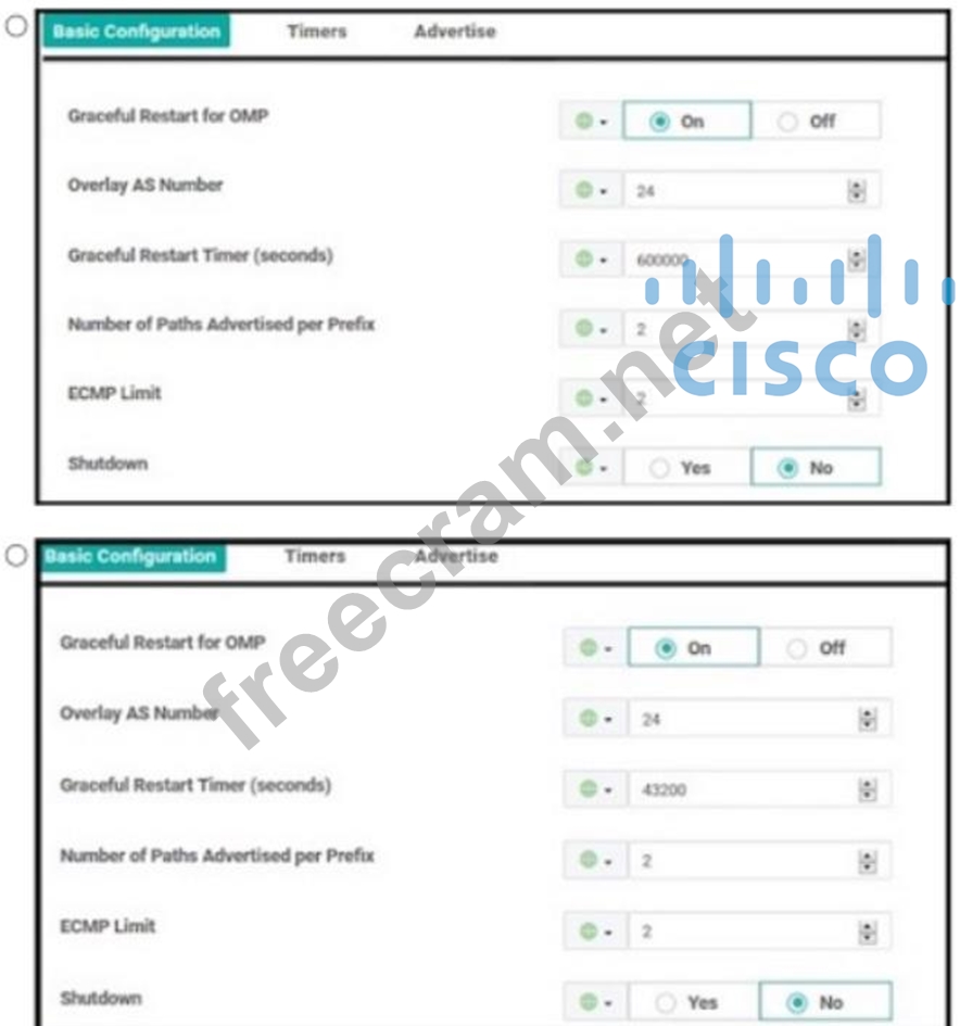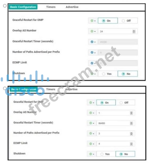 Question 40: Which feature template configures OMP? A) (Exhibit) B) (Exhi...