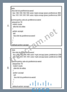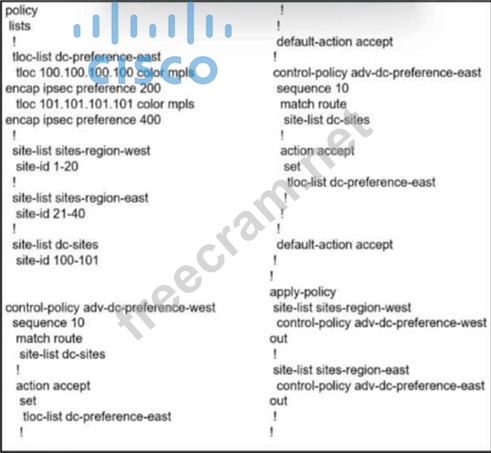 Question 35: Refer to the exhibit. (Exhibit) The Cisco SD-WAN network is ...