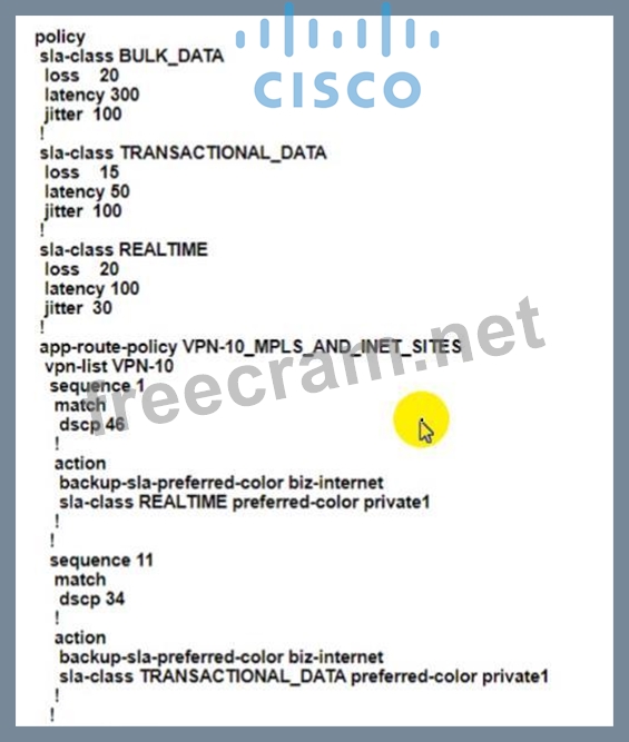 Question 12: An engineer configures an application-aware routing policy f...