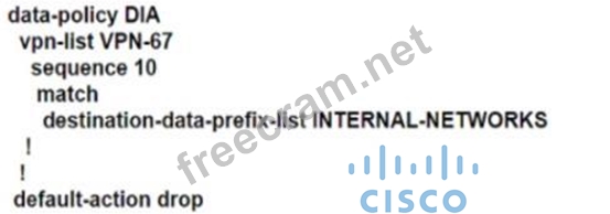 Question 157: An engineer modifies a data policy for DIA in VPN 67. The lo...