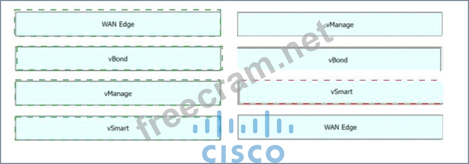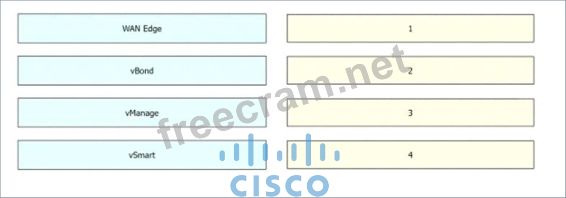 Question 2: Drag and drop the Cisco SD-WAN components from the left onto...