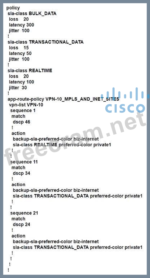Question 48: An engineer creates this data policy for DIA for VPN 10: (Ex...