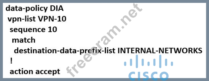Question 48: An engineer creates this data policy for DIA for VPN 10: (Ex...