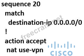 Question 85: An engineer modifies a data policy for DIA in VPN 200 to mee...