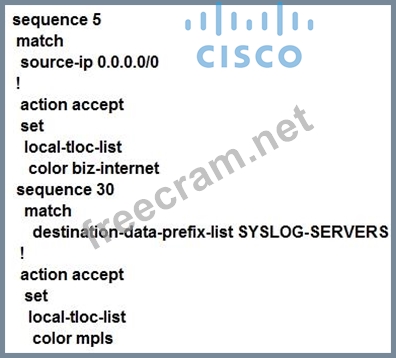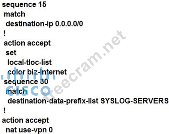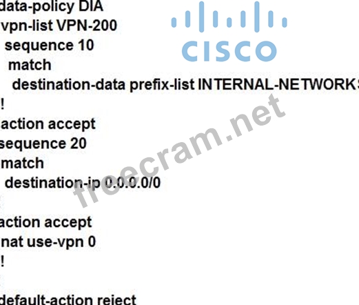 Question 85: An engineer modifies a data policy for DIA in VPN 200 to mee...