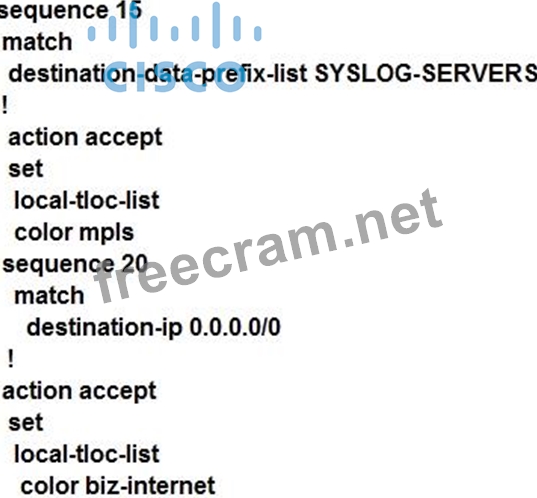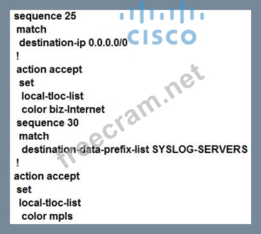 Question 45: A customer has MPLS and Internet as the TLOC colors. An engi...