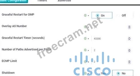 Question 41: What is the OMP graceful restart default value on vSmart con...