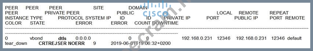Question 36: An engineer is troubleshooting a certificate issue on vEdge....