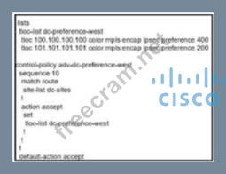 Question 45: A customer has MPLS and Internet as the TLOC colors. An engi...