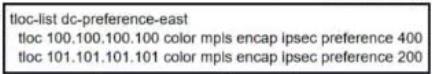 101.101.101.101) is primary for east sites, and the west data center (TLOC 100.100.100.100) is primary for west sites. Which configuration change achieves this objective?