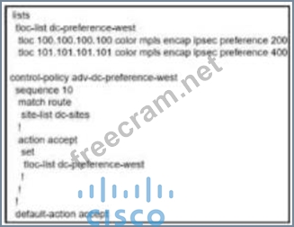 Question 85: An engineer modifies a data policy for DIA in VPN 200 to mee...