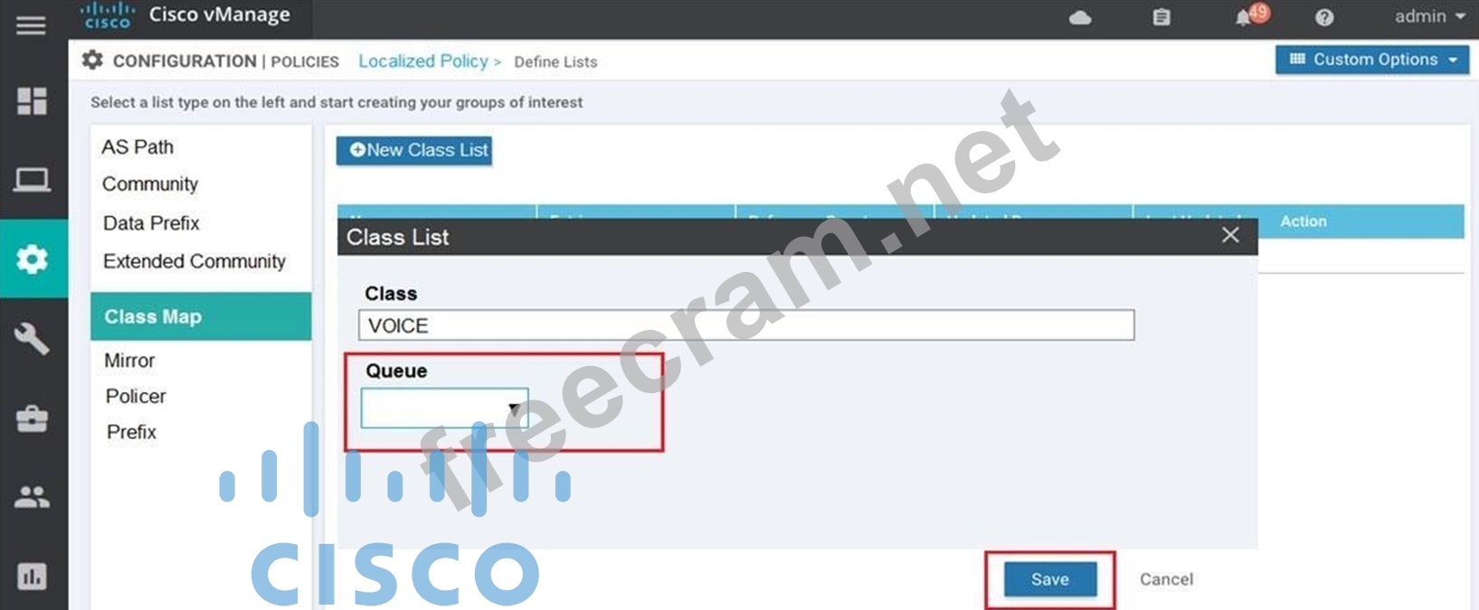Question 159: A voice packet requires a latency of 50 msec. Which policy i...