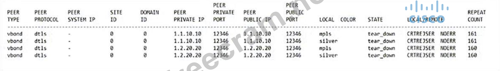 Question 134: Refer to the exhibit. vManage and vBond have an issue establ...