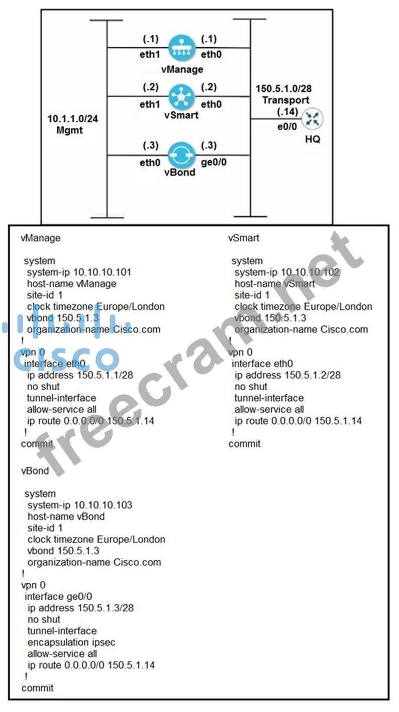 Question 134: Refer to the exhibit. vManage and vBond have an issue establ...