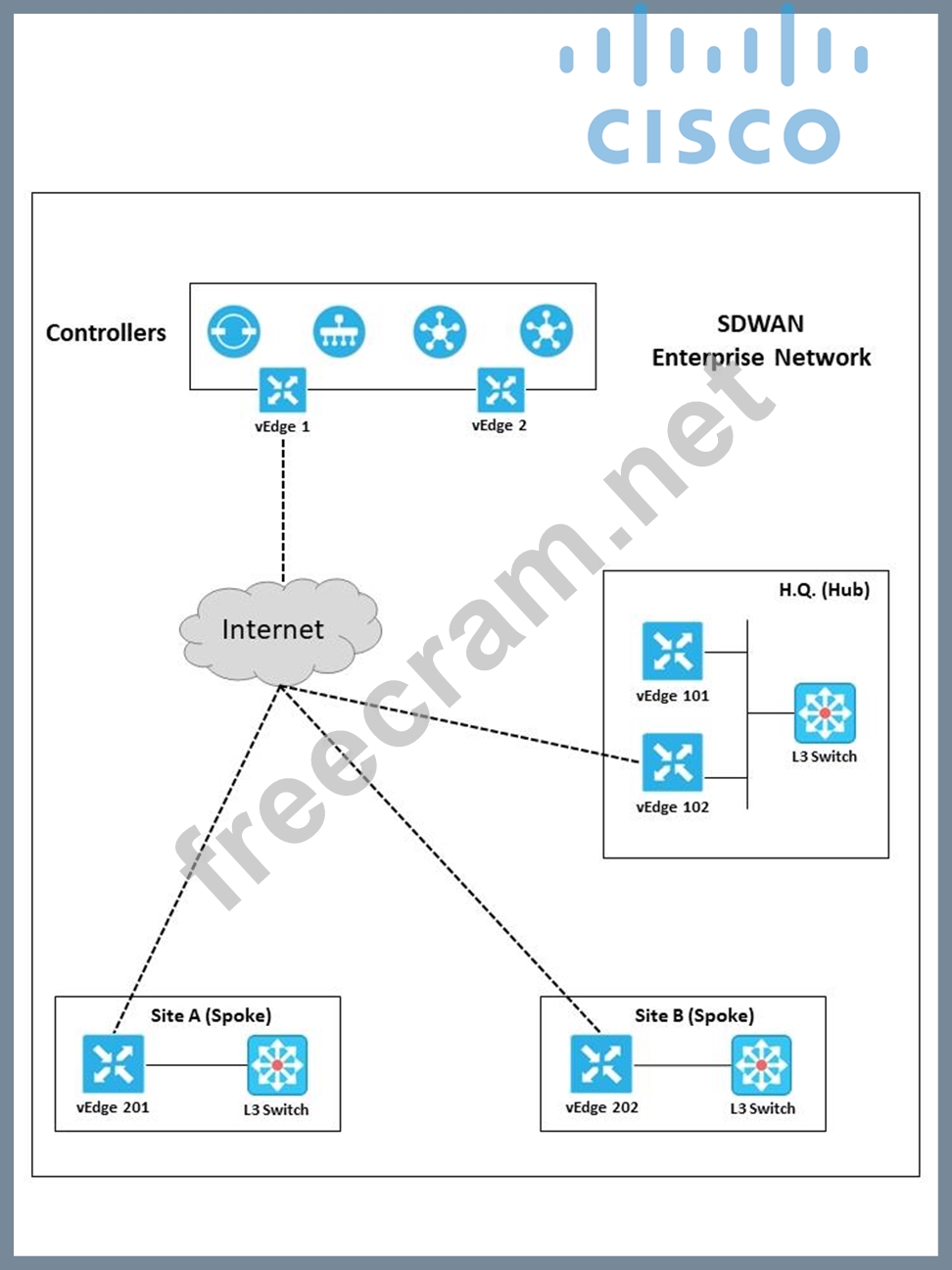 Question 122: Refer to the exhibit. The Cisco SD-WAN is deployed using the...