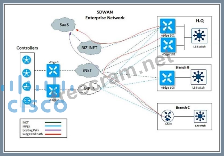 Question 122: Refer to the exhibit. The Cisco SD-WAN is deployed using the...