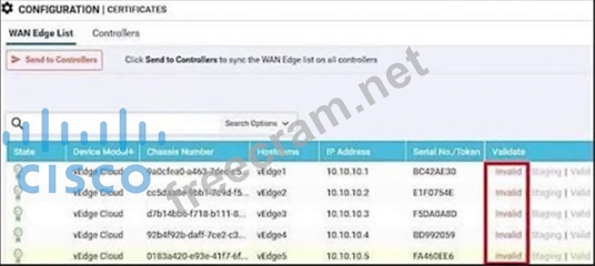 Question 36: An engineer is troubleshooting a certificate issue on vEdge....