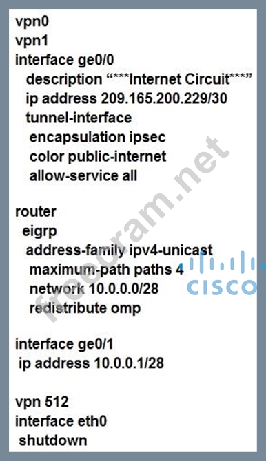 Question 141: Refer to the exhibit. An organization is testing a Cisco SD-...