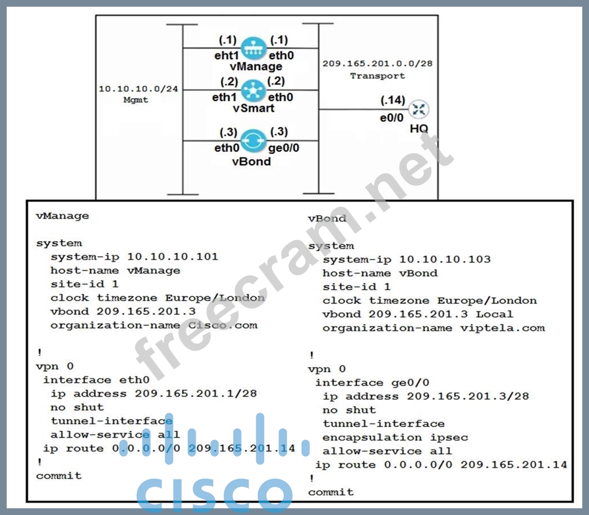 Question 134: Refer to the exhibit. vManage and vBond have an issue establ...