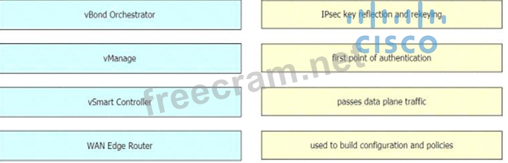 Drag and drop the Cisco SD-WAN components from the left onto their functions on the right.