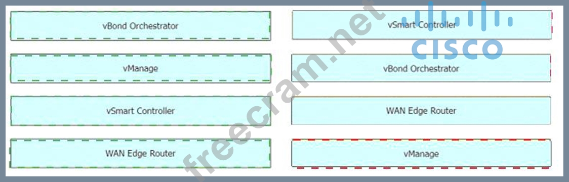 Question 14: Drag and drop the Cisco SD-WAN components from the left onto...