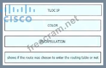 Drag and drop the route verification output from show omp tlocs from the left onto the correct explanations on the right.