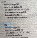 Refer to the exhibit. Which configuration extends the INET interface on R1 to be used by R2 for control and data connections?