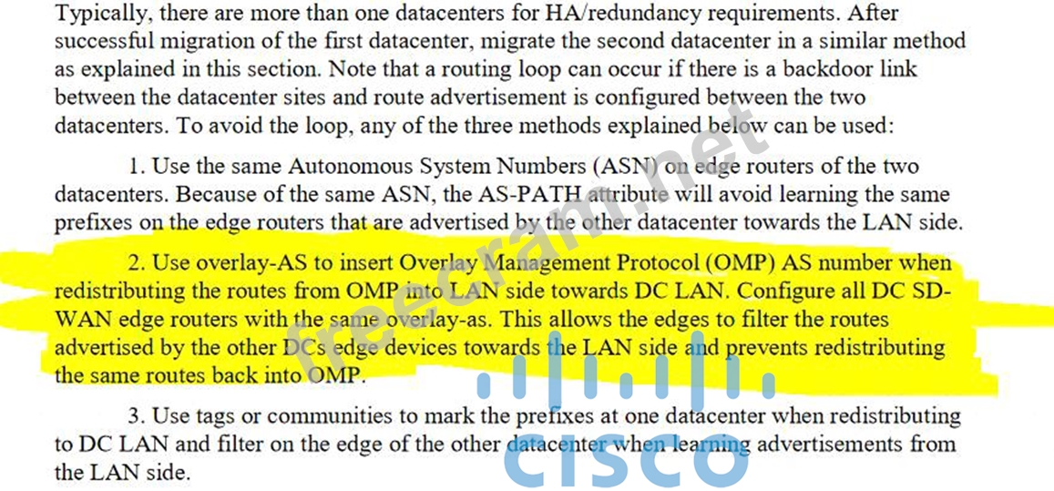 Question 146: An engineer must avoid routing loops on the SD-WAN fabric fo...