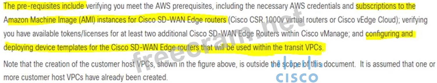 Question 117: A customer wants to use AWS for Cisco SD-WAN laaS services b...