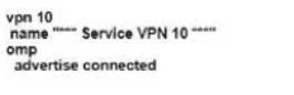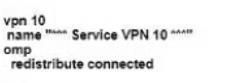 A WAN Edge device has several service VPNs with no routing protocol configured in the service VPNs The device must be configured so that all connected routes are visible in OMP for VPN 10 Which configuration meets the requirement?
