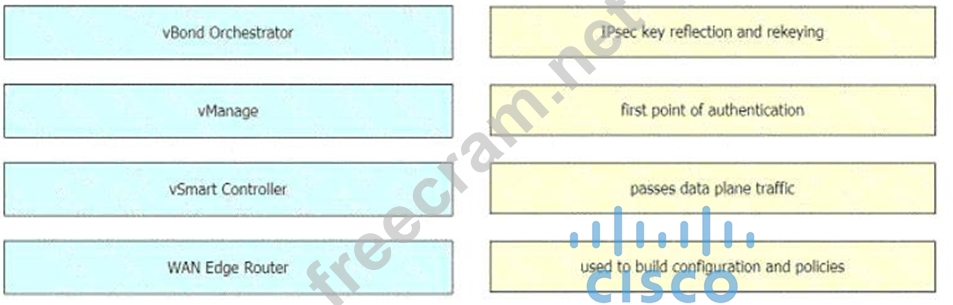 Question 83: Drag and drop the Cisco SD-WAN components from the left onto...