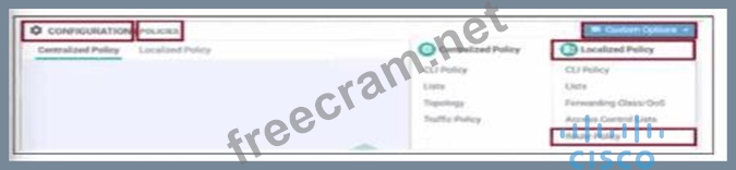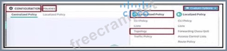 * Centralized Policy: This type of policy is applied at the controller level and affects multiple devices in the SD-WAN fabric. It allows the control of routing behavior across the entire network.