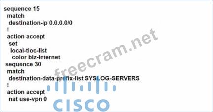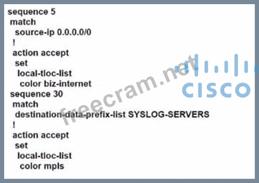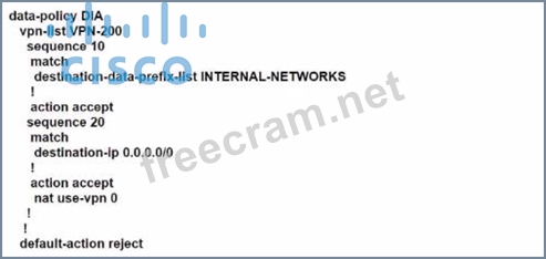 Question 191: An engineer modifies a data policy for DIA in VPN 200 to mee...