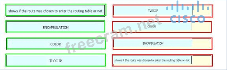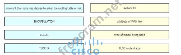 Drag and drop the route verification output from show omp tlocs from the left onto the correct explanations on the right.