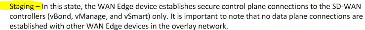 Question 47: In which device state does the WAN edge router create contro...