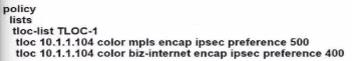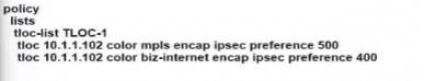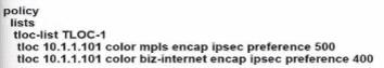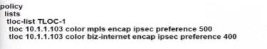 tloc 10.1.1.102 color mpls encap ipsec preference 500