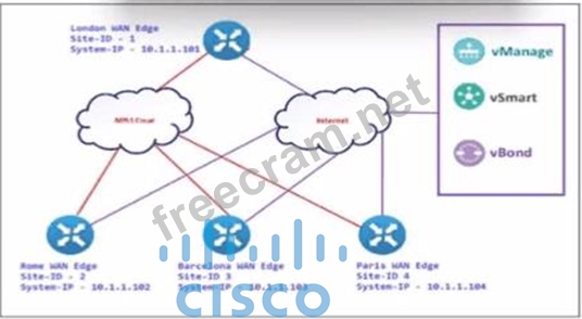 To configure Rome WAN Edge to prefer the MPLS cloud for reaching Paris WAN Edge, and use biz-internet as a backup, the policy must be set correctly to define the preference for each transport link.