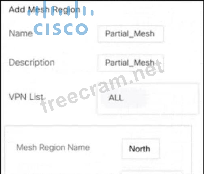 Question 205: The SD-WAN network is configured with a default full-mesh to...