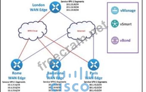 Question 39: Refer to the exhibit. (Exhibit) The Cisco SD-WAN network is ...